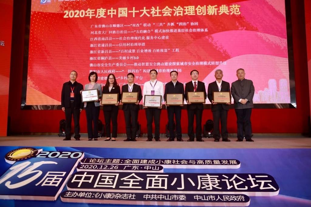 2020第十五届中国全面小康论坛于12月26日在广东中山举行,四川省简阳市入选“2020年度中国十大社会治理创新典范”。