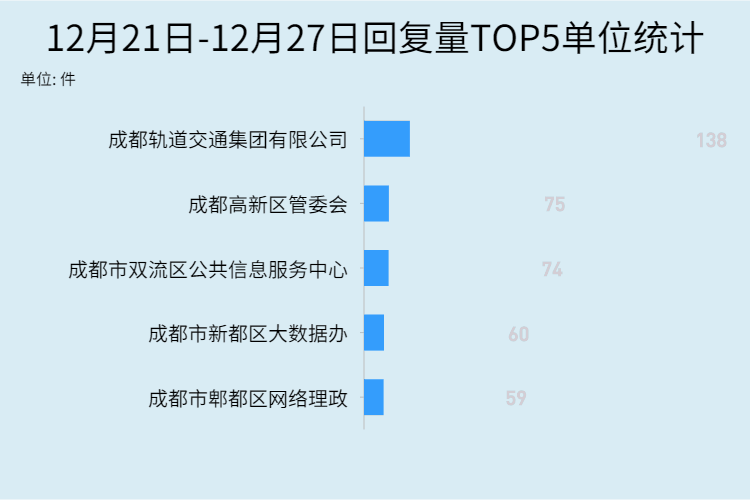 从具体接件转办单位来看,全川转办回复量排名上前五的单位分别为: