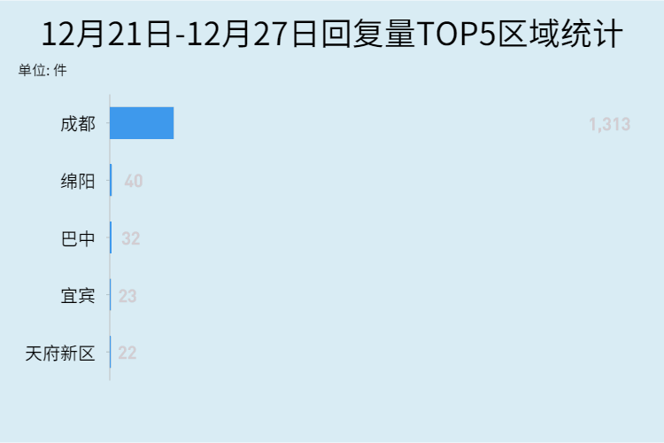 上周,全川回复量排名前五的区域为
