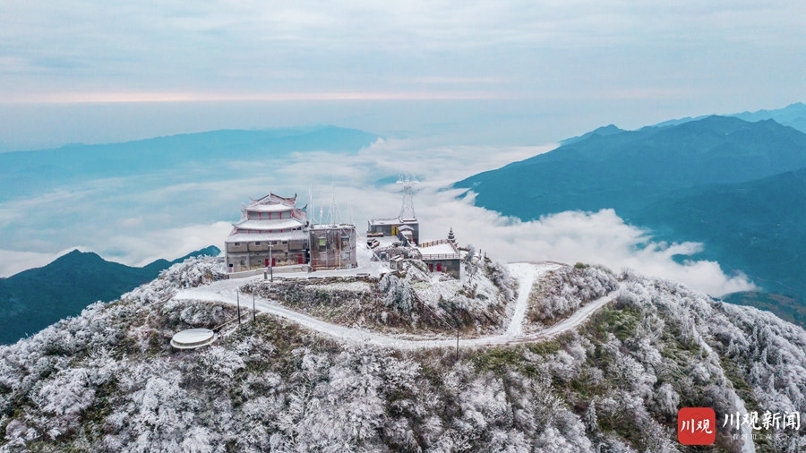 山峦、古刹、云海,四川华蓥山雪后初霁美如画