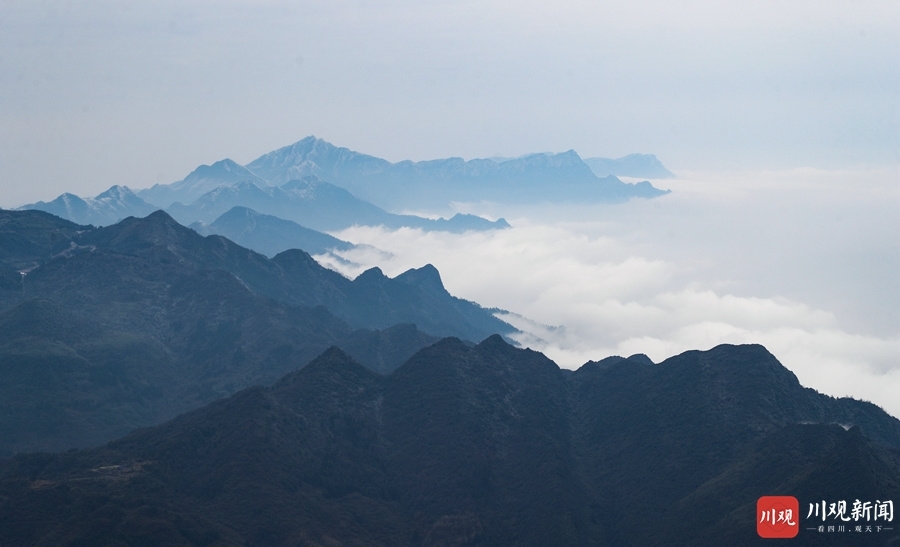 12月30日,雪后初霁的四川省华蓥山,山峦、古刹、树木与翻腾的云海相映成趣,宛如一幅水墨画。