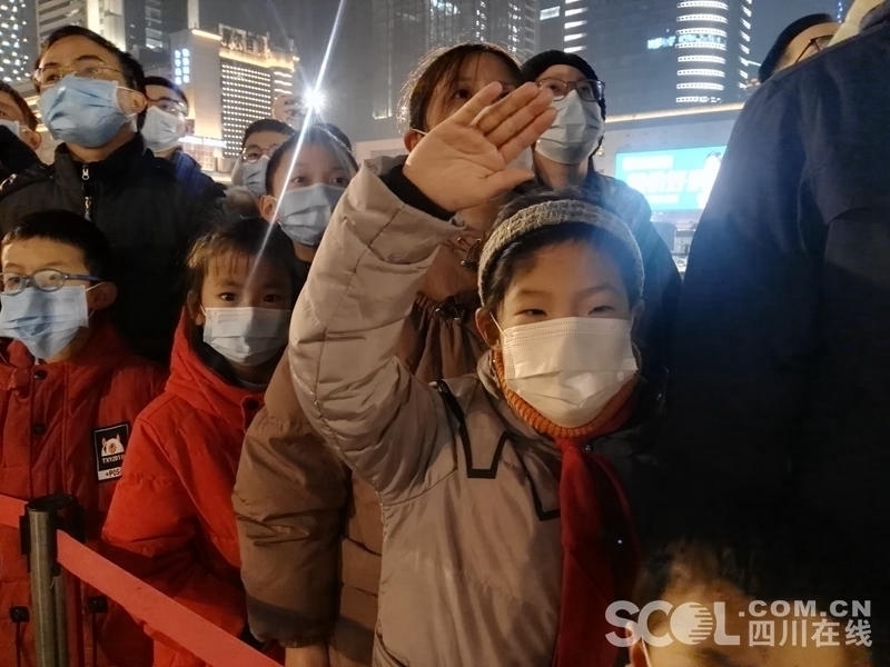 “2021年又是新的一年开始,希望祖国蒸蒸日上、繁荣富强!也祝大家在新的一年里一切顺利。”来自资阳市的廖向文带着13岁的儿子来看升旗。他说,让孩子与大家一起观看升旗仪式,对祖国的繁荣富强有了更真切的感受。