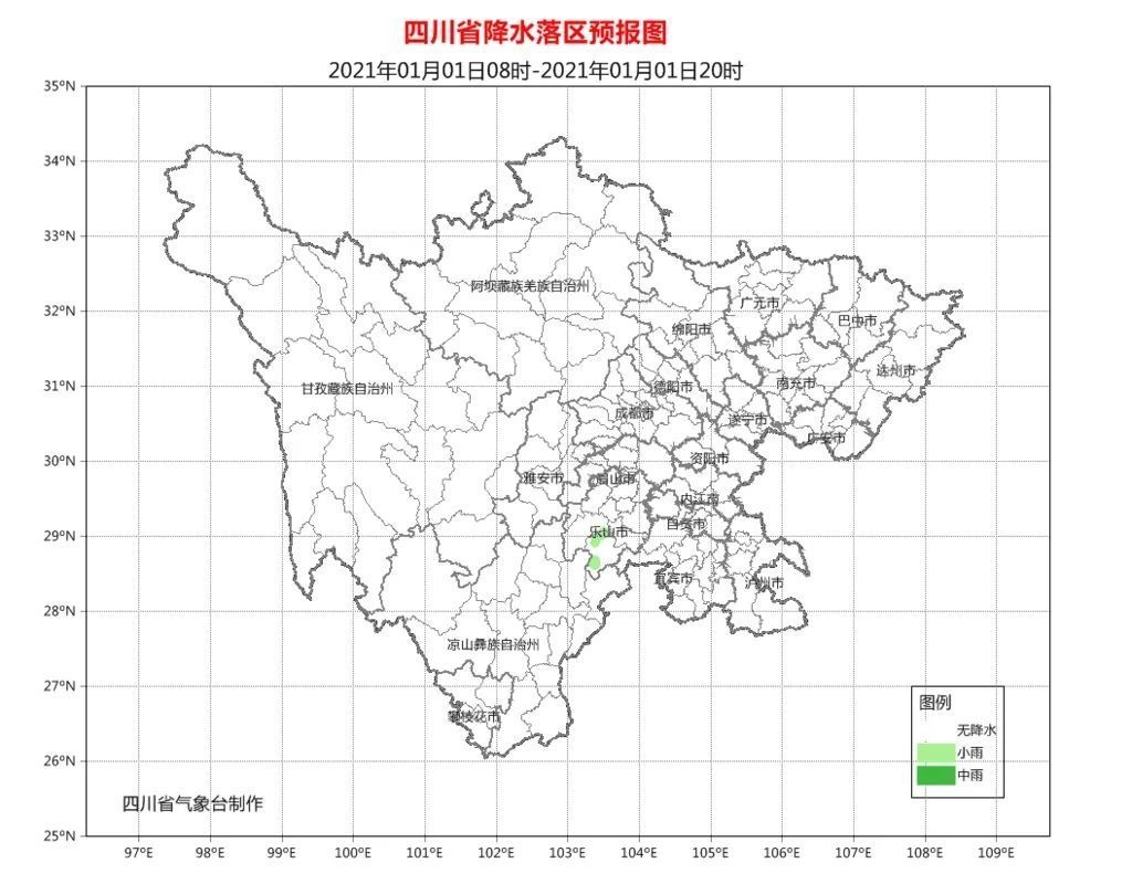 1月1日晚上到2日白天,盆地各市阴天间多云,其中泸州、自贡、内江、宜宾、乐山、眉山、雅安7市,成都、德阳、绵阳3市西部以及巴中、达州2市北部有小雨或雨夹雪;川西高原和攀西地区晴间多云。