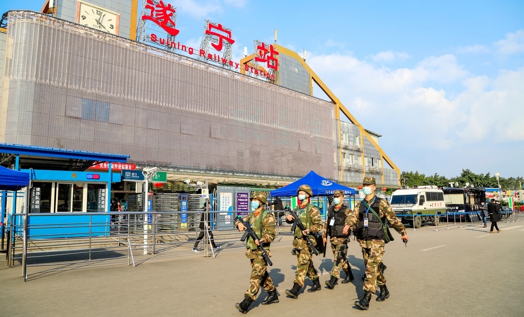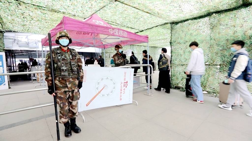 记者在成都东站看到,车站全面落实疫情防控工作,旅客在佩戴口罩、出示健康码、红外测量体温后有序进站。在这里执勤的武警成都支队官兵严格落实疫情防控常态化要求,按照全面部署,重点加强,周密防范,巡防结合的要求,在进出站口、地铁入口等重要节点维护车站秩序。
