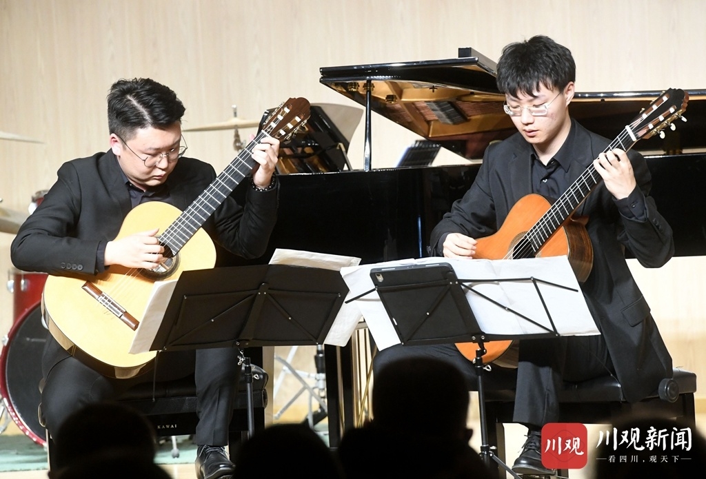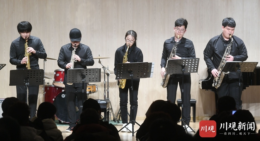 新年音乐会上,来自川音现代器乐系吉他、萨克斯管教研室和川音流行音乐学院流行器乐系的师生们,携手美国茱莉亚音乐学院钢琴博士孙麒麟,以及德国ARD音乐大奖获得者匡俊宏,为大家演绎了一场精彩绝伦的音乐盛宴。