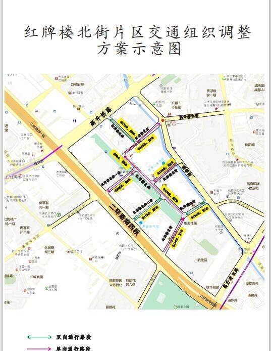 1月5日,记者从成都市交管局获悉,为切实解决红牌楼北街片区停车乱、出行难的问题,决定调整红牌楼北街片区部分道路的交通组织,根据《中华人民共和国道路交通安全法》第三十九条、第九十条等法律法规之规定,成都市公安局交通管理局发布《关于调整红牌楼北街及周边道路交通组织的通告》,2021年1月11日起,红牌楼北街及周边道路有变。