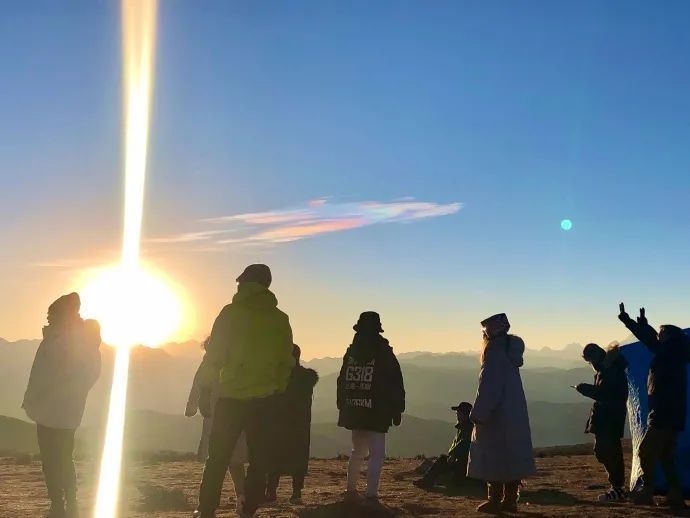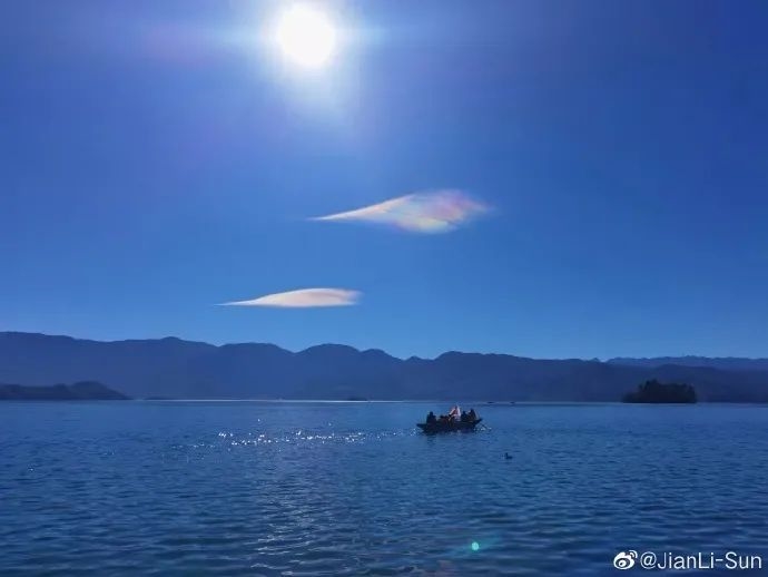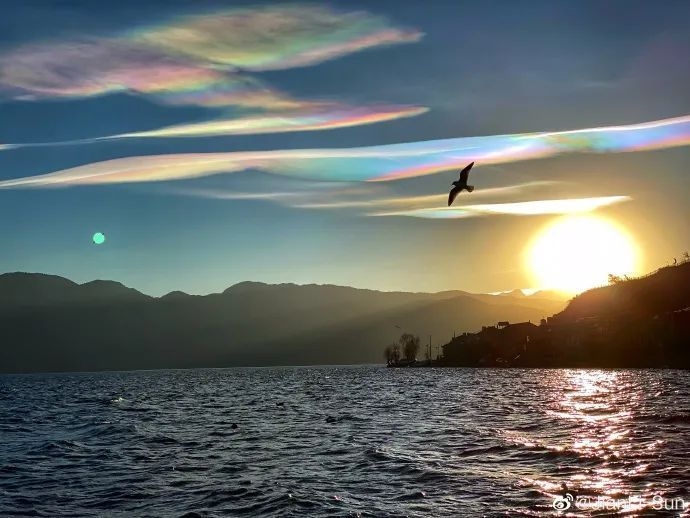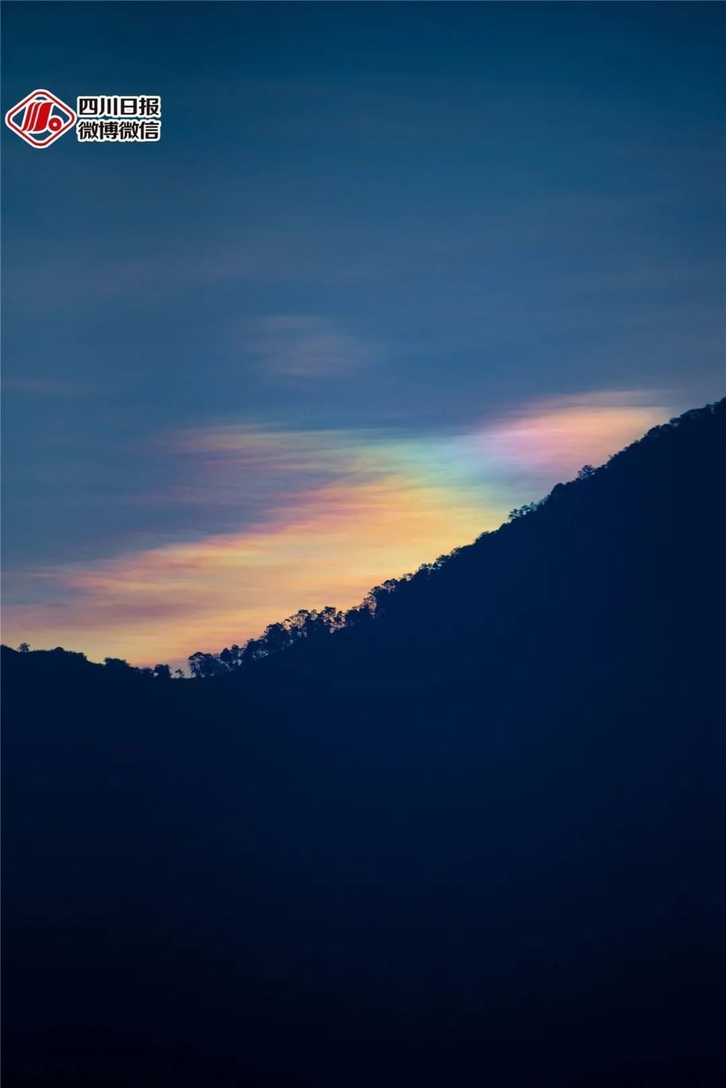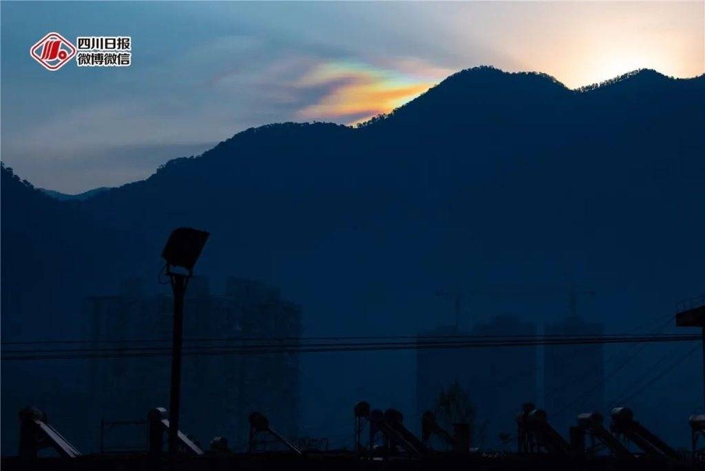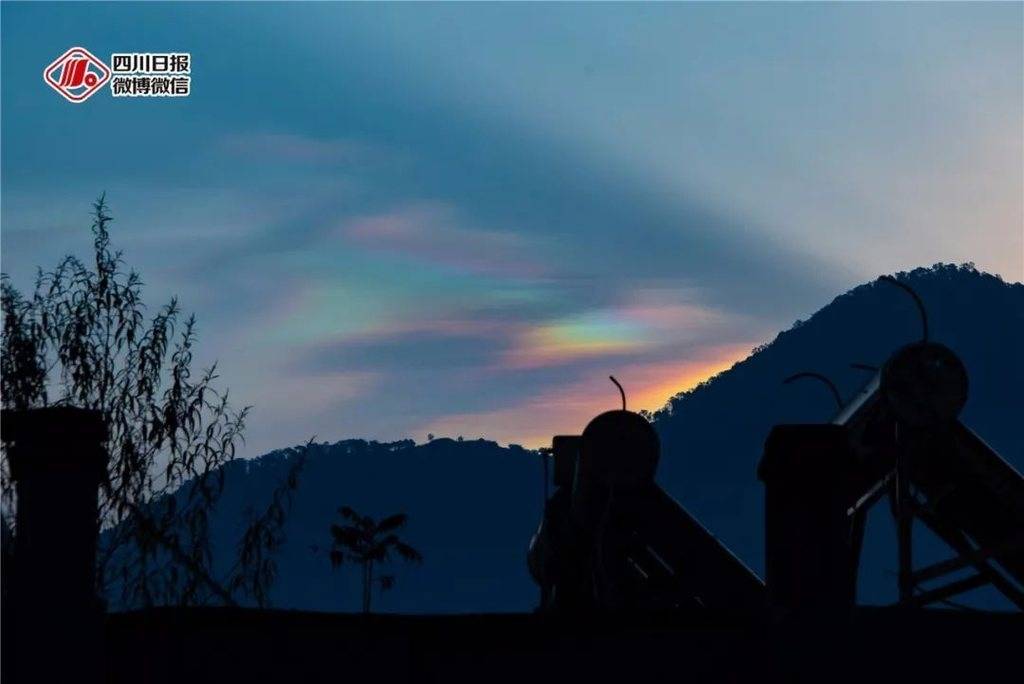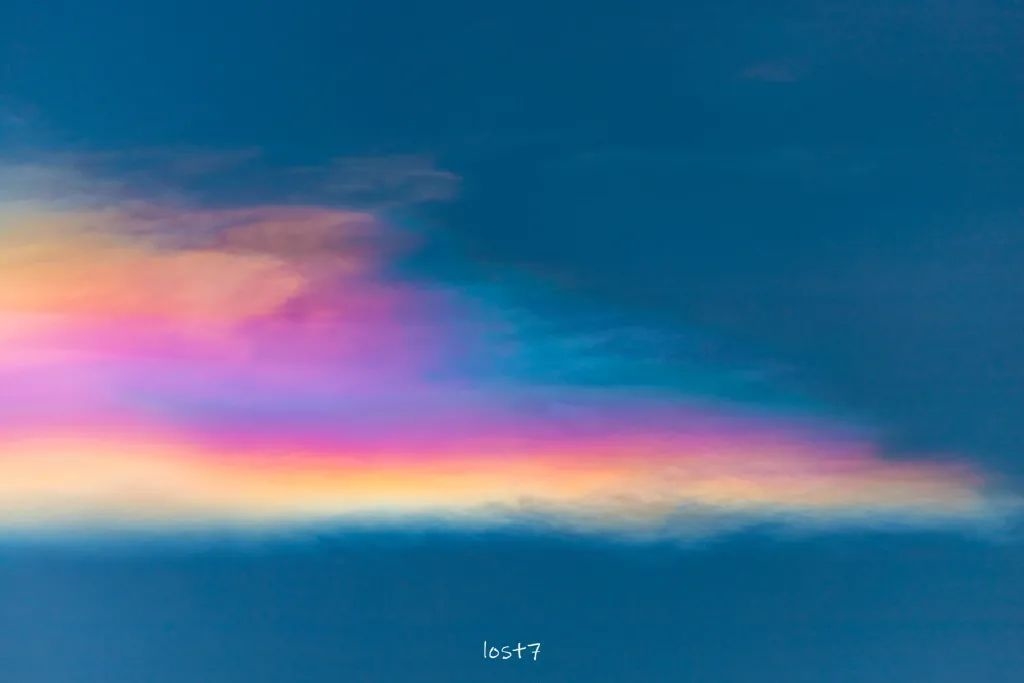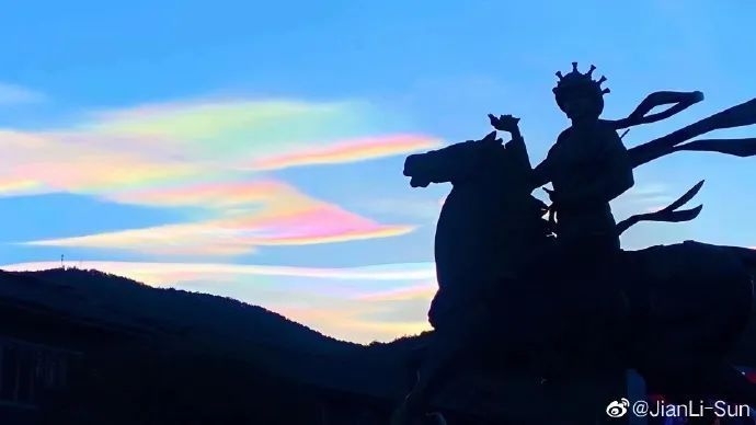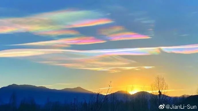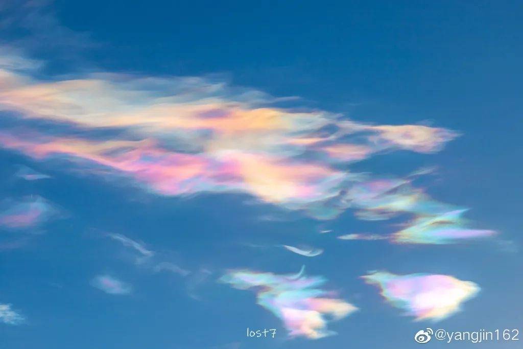 据气象专家介绍,天空出现这种云是“密卷云”,又叫“冰晶云”,民间往往称之为“七彩云”或“彩虹云”,是太阳光线与云彩中的冰晶结构产生的自然现象。