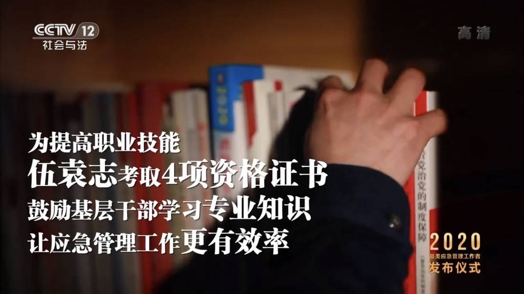1月6日晚,《闪亮的名字——2020最美应急管理工作者发布仪式》在央视社会与法频道(CCTV-12)首播,南充市营山县应急管理局局长伍袁志作为四川唯一代表接受表彰。