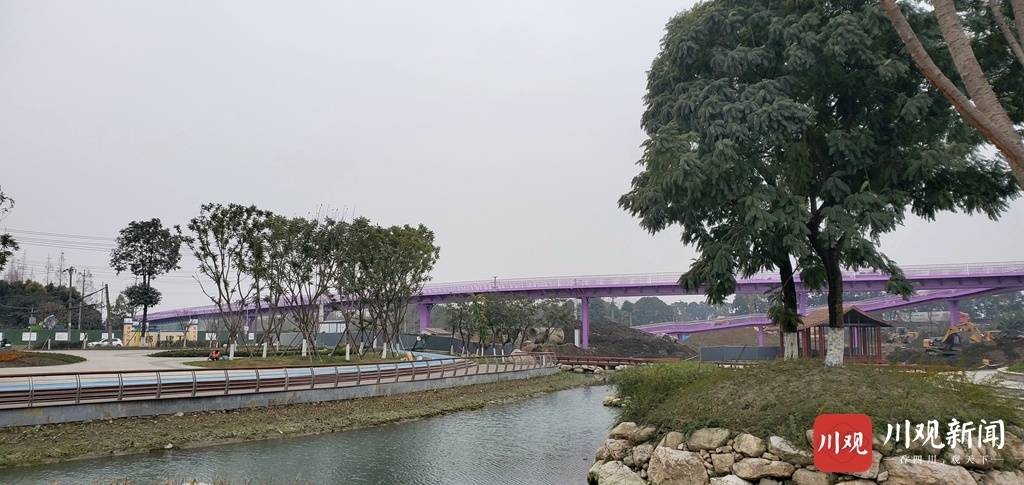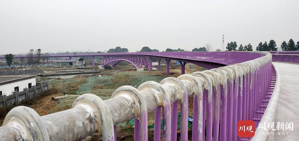 1月7日上午,记者前往现场了解到,这座紫色的跨成双大道及江安河桥主体结构已基本完工,目前正在做机电照明和泛光照明灯带等收尾工作,大桥预计本月竣工,春节前后将对外开放,供市民观景、骑行、漫步。