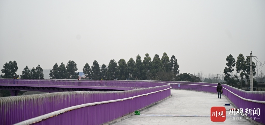 2021年第一周,成都市民的朋友圈里多了一个亮眼的“网红”:一座钢结构桥梁横跨于成双大道及江安河之间,重要的是,这座桥是浪漫的紫色。