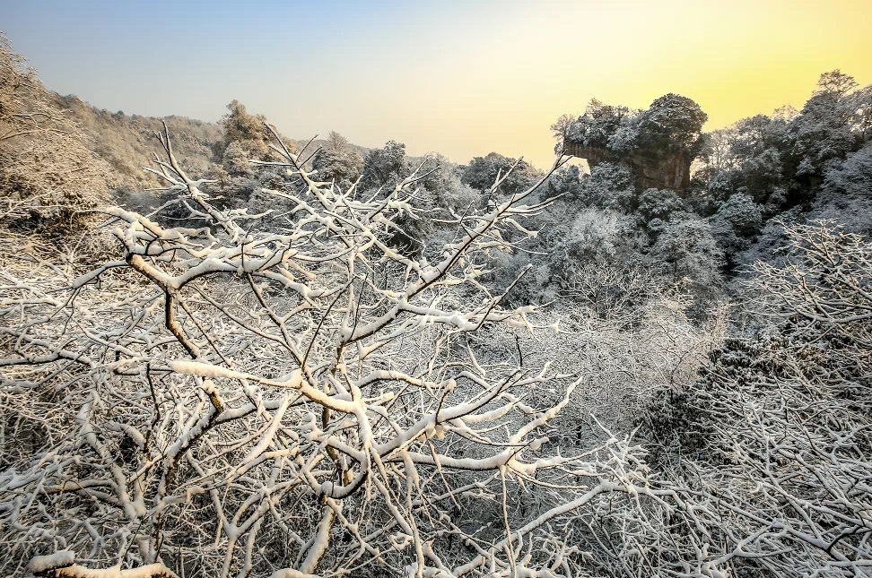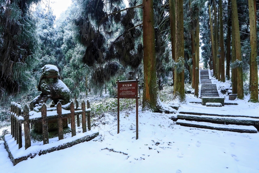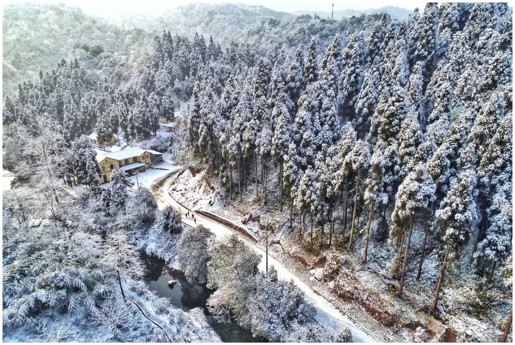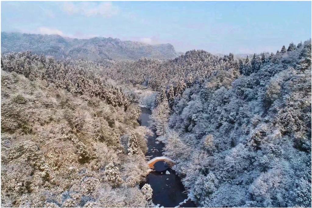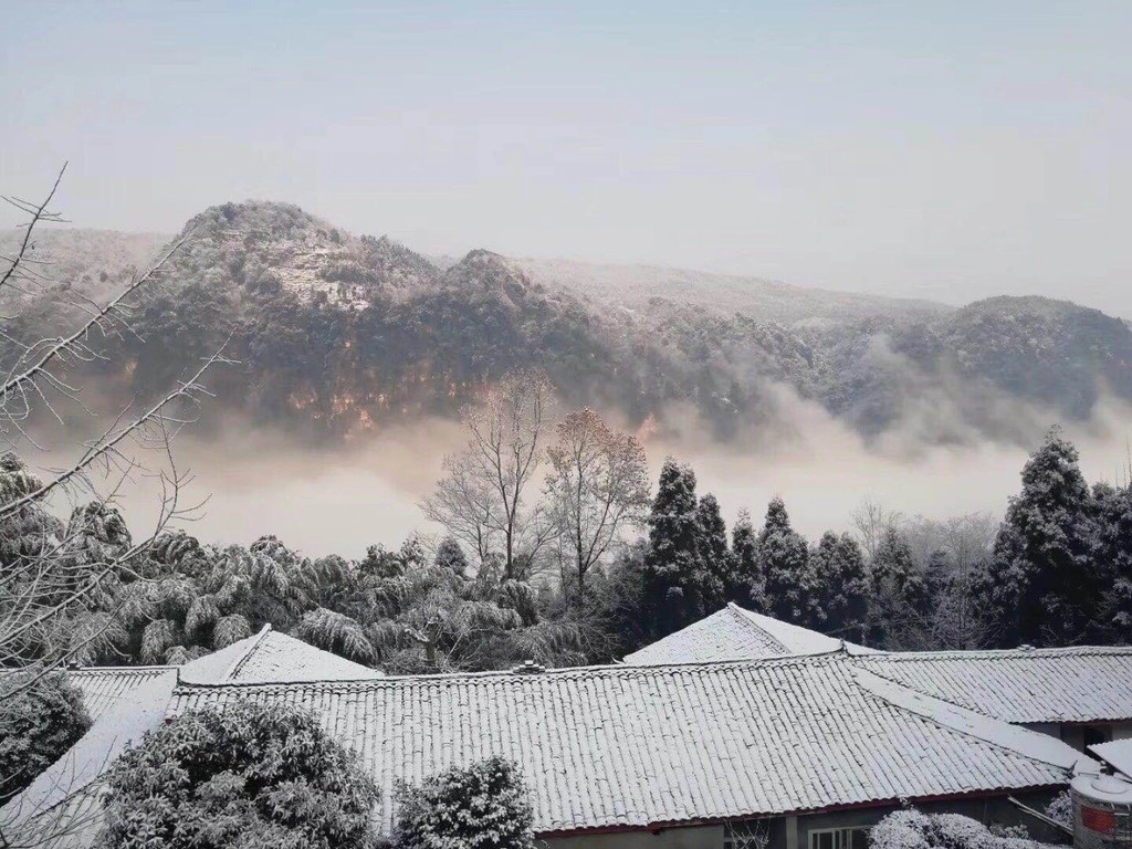 1月7日上午,成都天台山景区降下2021年的第一场雪,轻灵剔透的雪花让天台山比往年更加晶莹剔透, 染白了天台山的一草又一木,一山又一树。白雪覆盖的房屋下、山壁边,悬挂着晶莹剔透的冰凌;炊烟袅袅的雪地里,似乎又看到当年小伙伴雪中嬉戏的身影。白雾茫茫的山头也被白雪覆盖,仿佛置身人间仙境,市民游客在冰雪世界中耍雪、赏雪,体验了一把雪国风光。