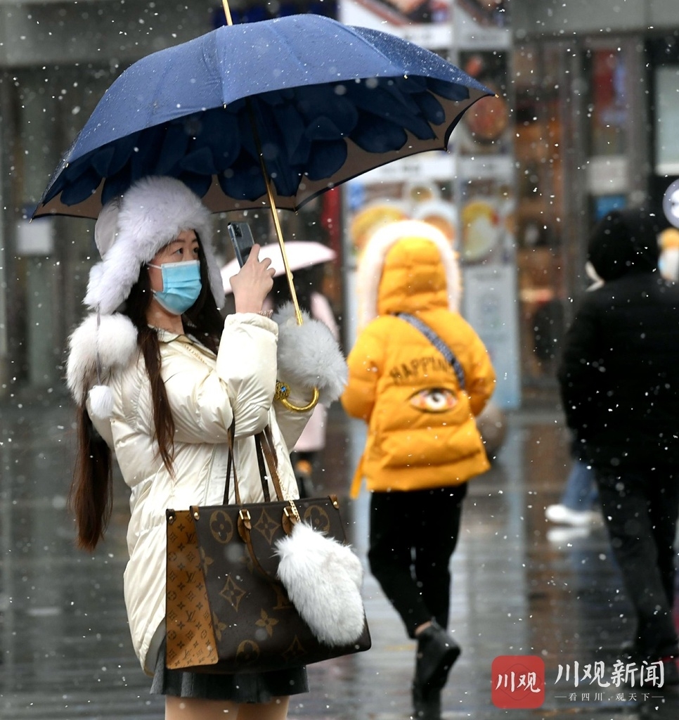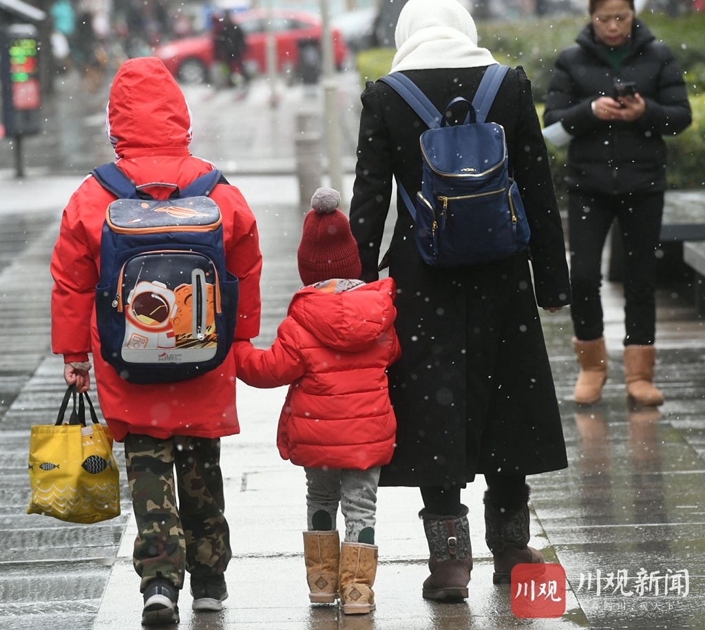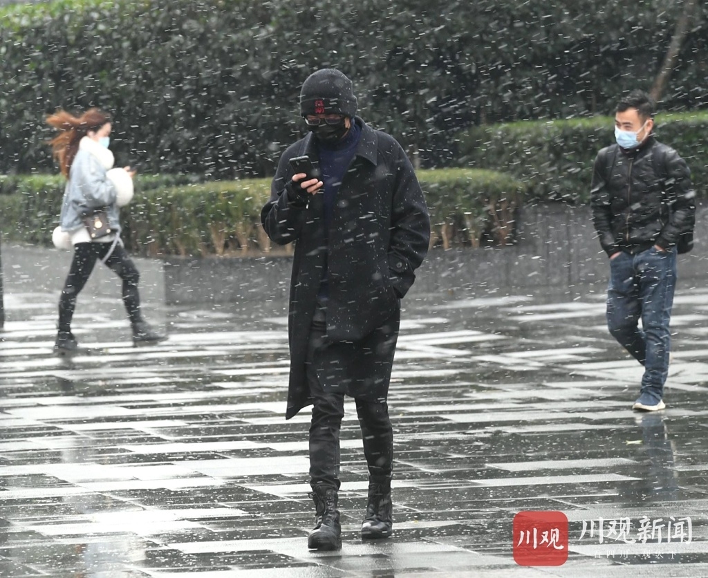 1月7日,成都市区一早就飘起了雪花,学生、老人、上班族,迎着“大头皮雪”开启了一天的忙碌生活。这场在成都市区难得一见的初雪,从清晨一直下到现在,街上的市民纷纷拿出手机拍照,纪念瑞雪兆丰年。