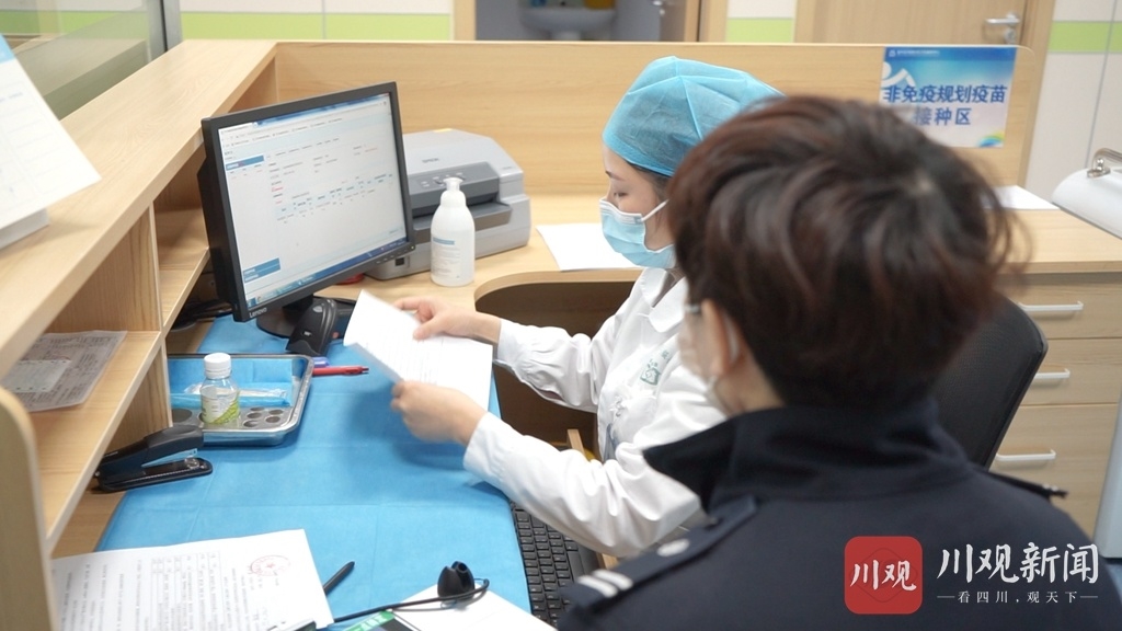 随后,接种人员依次进入预检室。严格核对身份信息后,进行健康状况询问与接种禁忌核查,并在预防接种门诊处置单上签字。“我们要严格把握好接种禁忌,包括28天内有没有接种过其他疫苗、是否有发热腹泻等。”现场工作人员告诉记者,他们主要是为接种者的健康状况把关。