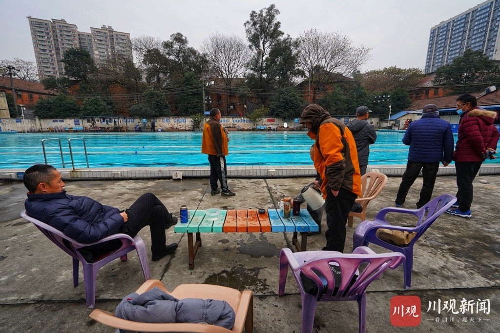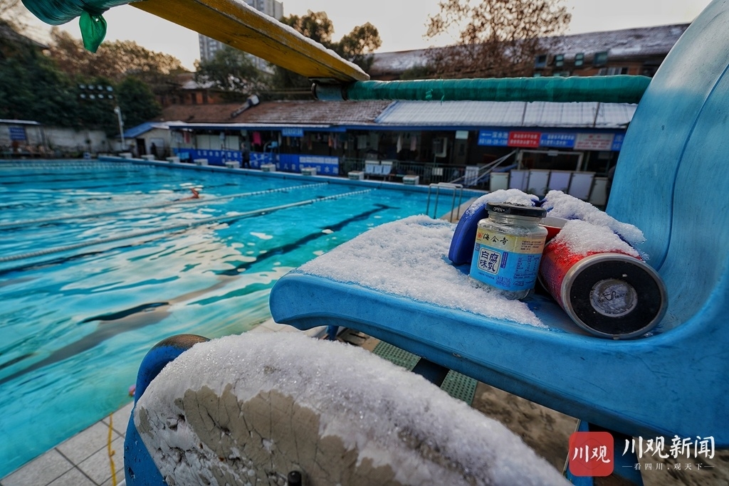 1月8日,前一天飘了一天雪花的成都,今日凌晨就消停了。清晨,记者在有着五十年历史的露天游泳池看到,泳池边的屋檐上积雪还没融化,池边还结着薄冰,可来此锻炼冬泳爱好者却不见少。