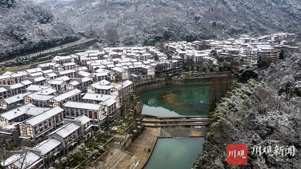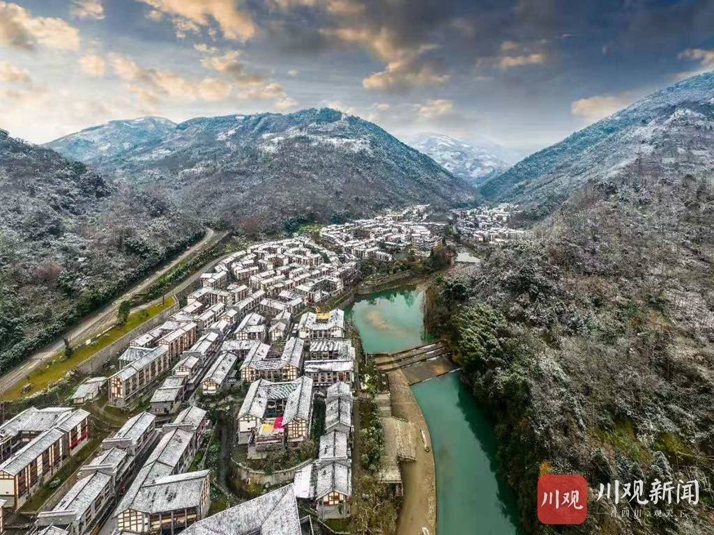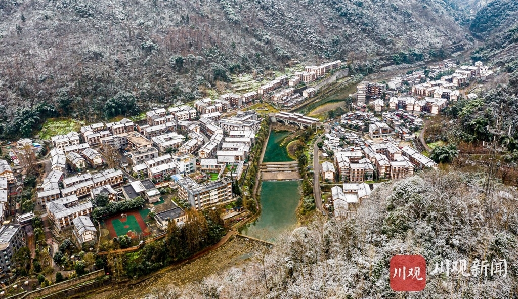 1月8日,雪后的大邑县斜源小镇银装素裹,斜江从旁静静地流过,两岸绵绵青山也“白了头”,美不胜收。