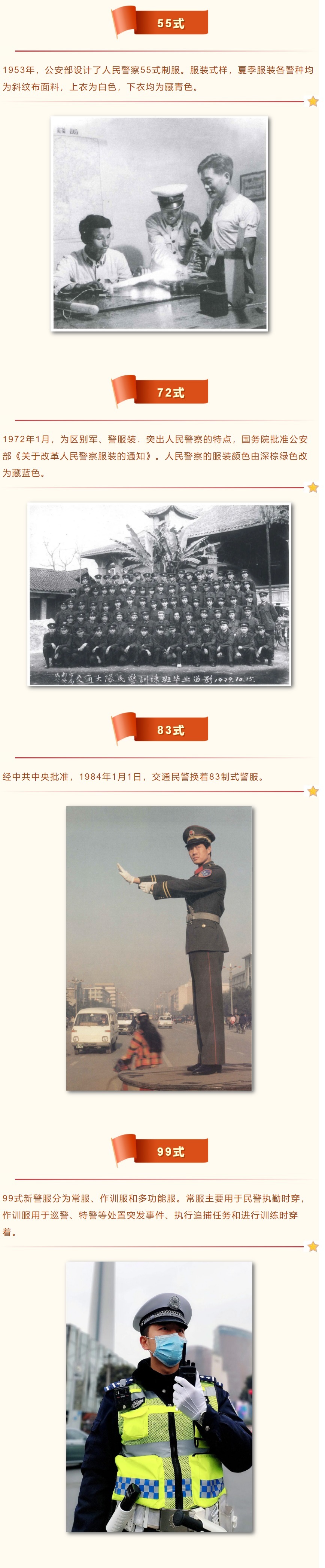 人民警察警服镌刻着时代的烙印,每一套警服都是人民警察发展史的一个缩写。警服虽历经数次变革,但不变的是人民警察服务为民的初心。