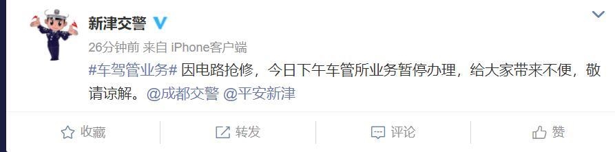 @车主们,因电路抢修,新津车管所业务暂停办理