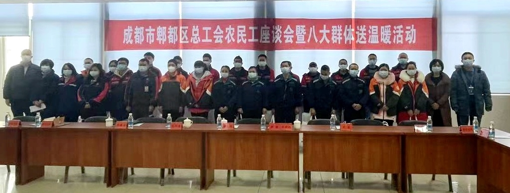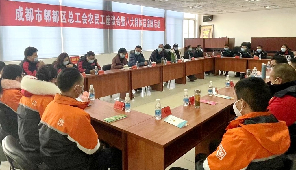 该区总工会举行农民工座谈会暨八大群体送温暖活动,旨在做好疫情防控常态化背景下工会农民工关爱服务工作,深入贯彻今冬明春关爱农民工服务五大专项行动,进一步保障关爱快递员等“八大群体”,来自成都市傲鼎新路大件运输有限公司、四川顺丰速运有限公司等6家企业的25名农民工、快递员等“八大群体”职工代表参加了此次活动。
