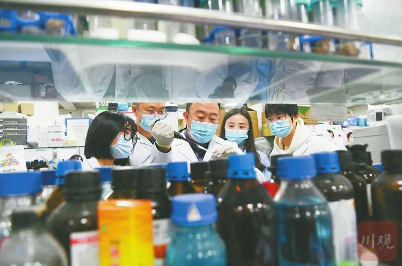 1月5日,四川大学华西医院生物治疗国家重点实验室研究员巩长旸(中)带领团队在实验室进行实验。 记者肖雨杨摄