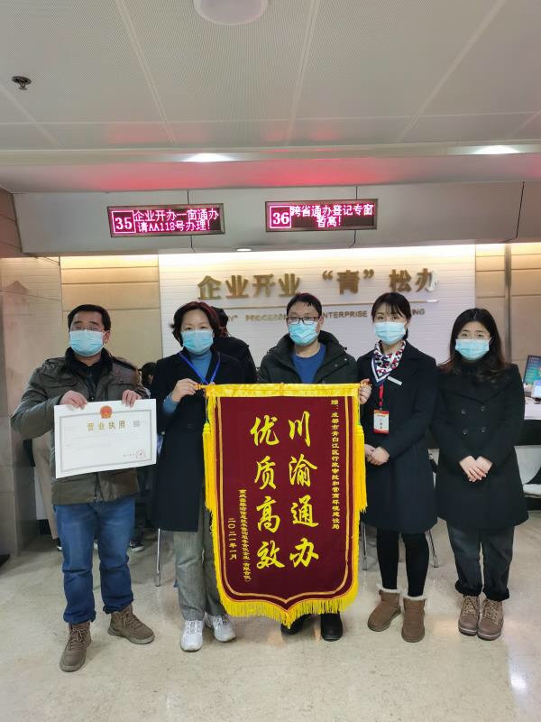 “我是在成都生活的重庆人,想和重庆老家的朋友合伙办个企业,按着惯性思维,我应该赶回重庆办理手续。”张先生听说青白江开通了跨省通办业务,抱着试一试的态度来咨询,“没想到可以全程网上提交资料,重庆市南川区那边一核准,青白江这边就打印出了盖有重庆市南川区市场监管局印章的营业执照。”