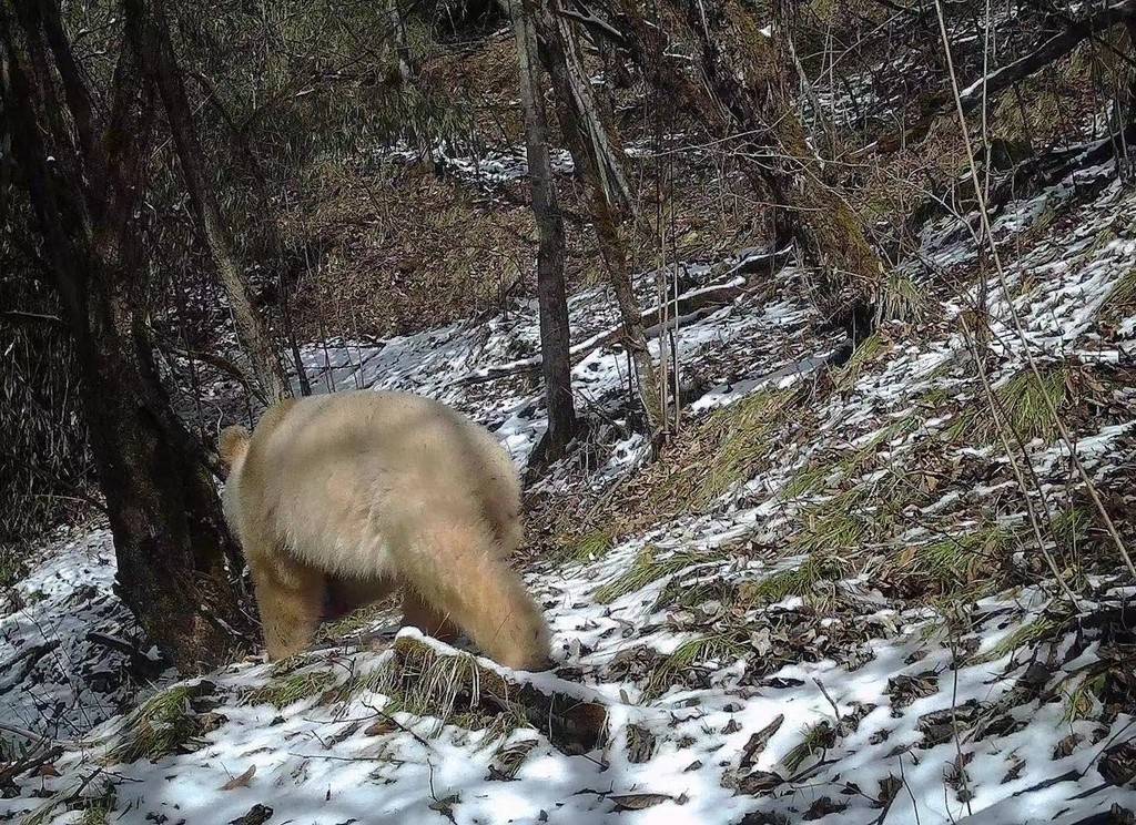 据四川卧龙白色大熊猫保护研究项目执行人谭迎春介绍,从红外相机拍摄到的影像判断,这只白色大熊猫从2019年5月到2020年2月期间长大了不少,体格壮实。相较于小时候的通体白色,它在成年后四肢的毛发还显出淡淡的金色。2020年两次记录中这只白色大熊猫都是单独活动,由此推算,它目前已3岁左右,已离开妈妈,“自立门户”了。