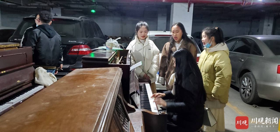 记者看到,在停车场内,20台钢琴摆放在两排停车位中间,一群年轻人正在尽情演奏。原来,四川省2021年普通高校招生音乐类专业统一考试正在川音举行,部分考生选择来到这处地下停车场练习,既不会打扰到周围居民,又方便相互交流。