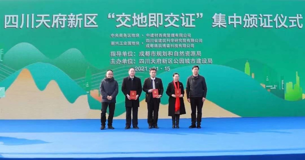 “对用地企业而言,时间意味着‘真金白银’,交地即交证大大缩短土地权利人办事时间,有效促进出让用地早开工、早投建,这极大地振奋了我们投资者的信心。”1月15日,在天府新区中央商务区“交地即交证”集中颁证仪式现场,刚刚拿到不动产权证书的成都德辰博睿科技有限公司相关负责人兴奋地说。这也是四川省首个交地即交证项目。