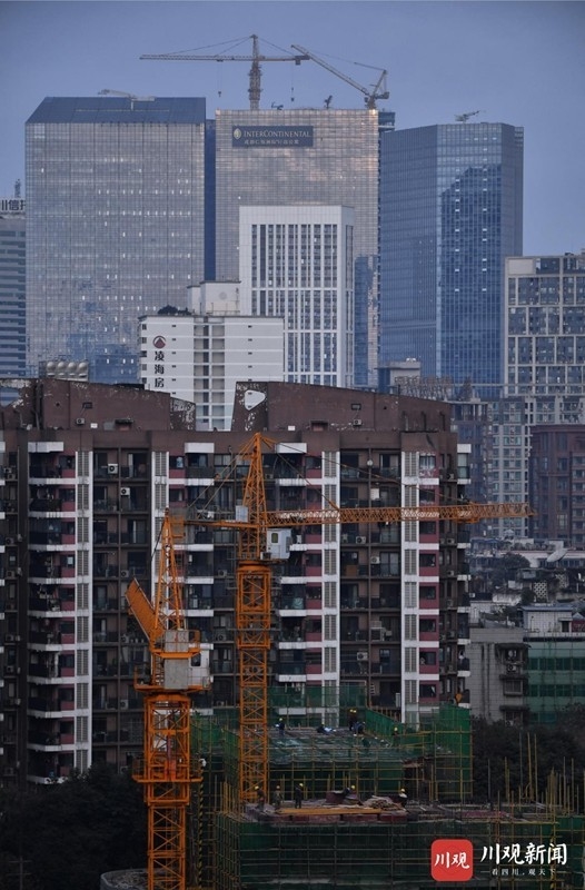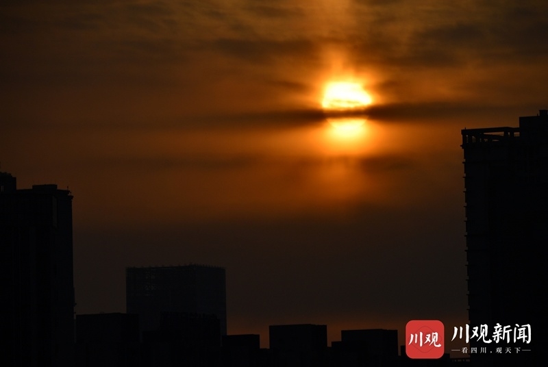 1月17日,降温后的成都市区迎来晴天,太阳从东升起,阳光撒在城市中。由于受到空中水汽的折射影响,空中的太阳变成了两个,像极了双黄蛋,你见到了吗?