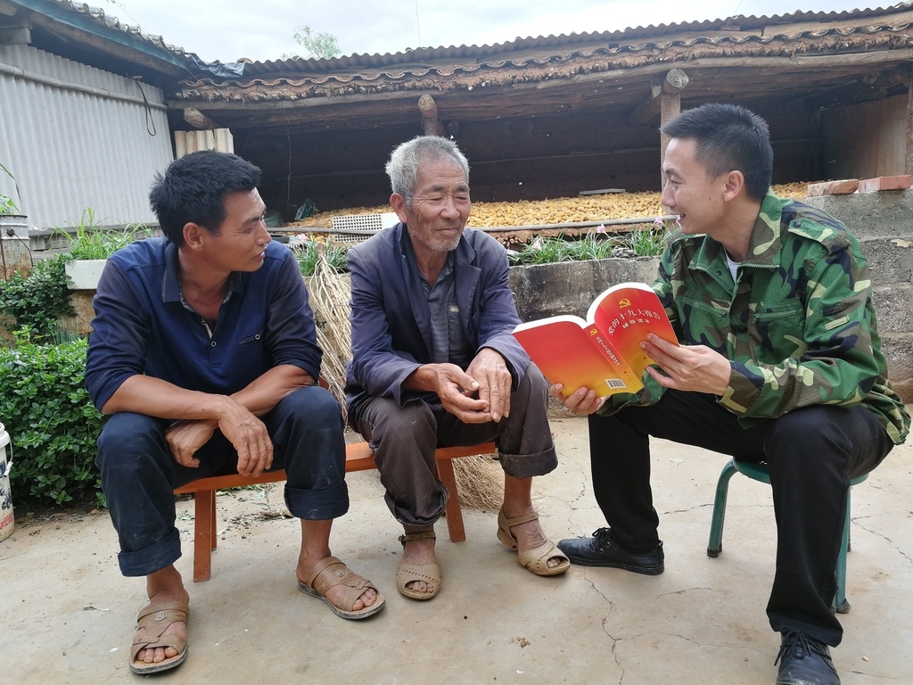 张富银(右一)在红格拉村入户面对面宣讲党的惠农政策、脱贫攻坚举措,让群众感受到党和政府的温暖。