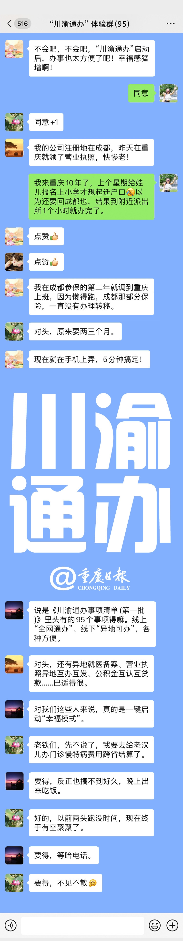 自2020年7月22日,川渝两省市政府办公厅签订《协同推进成渝地区双城经济圈“放管服”改革合作协议》以来,两地协同推进,在多个领域取得阶段性成果,首批95项事项已全部实现川渝通办。今年初,双方又共同印发《成渝地区双城经济圈便捷生活行动方案》。