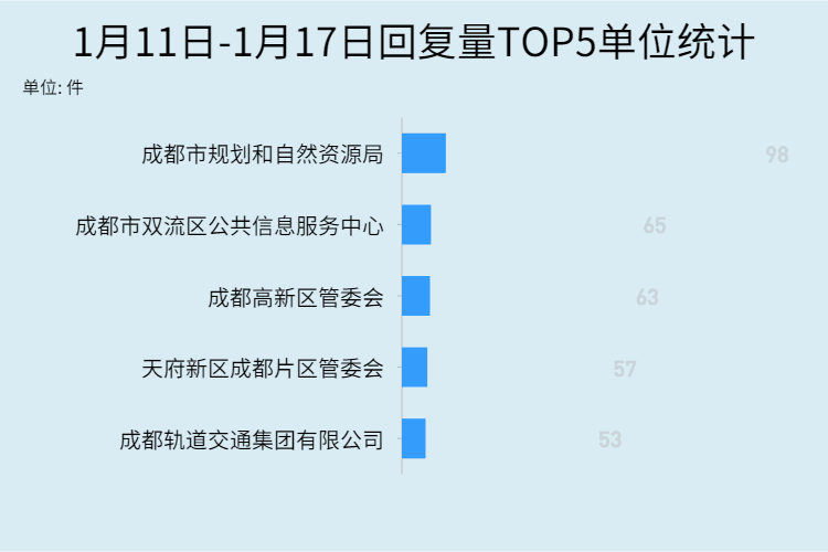 从具体接件转办单位来看,全川转办回复量排名上前五的单位分别为: