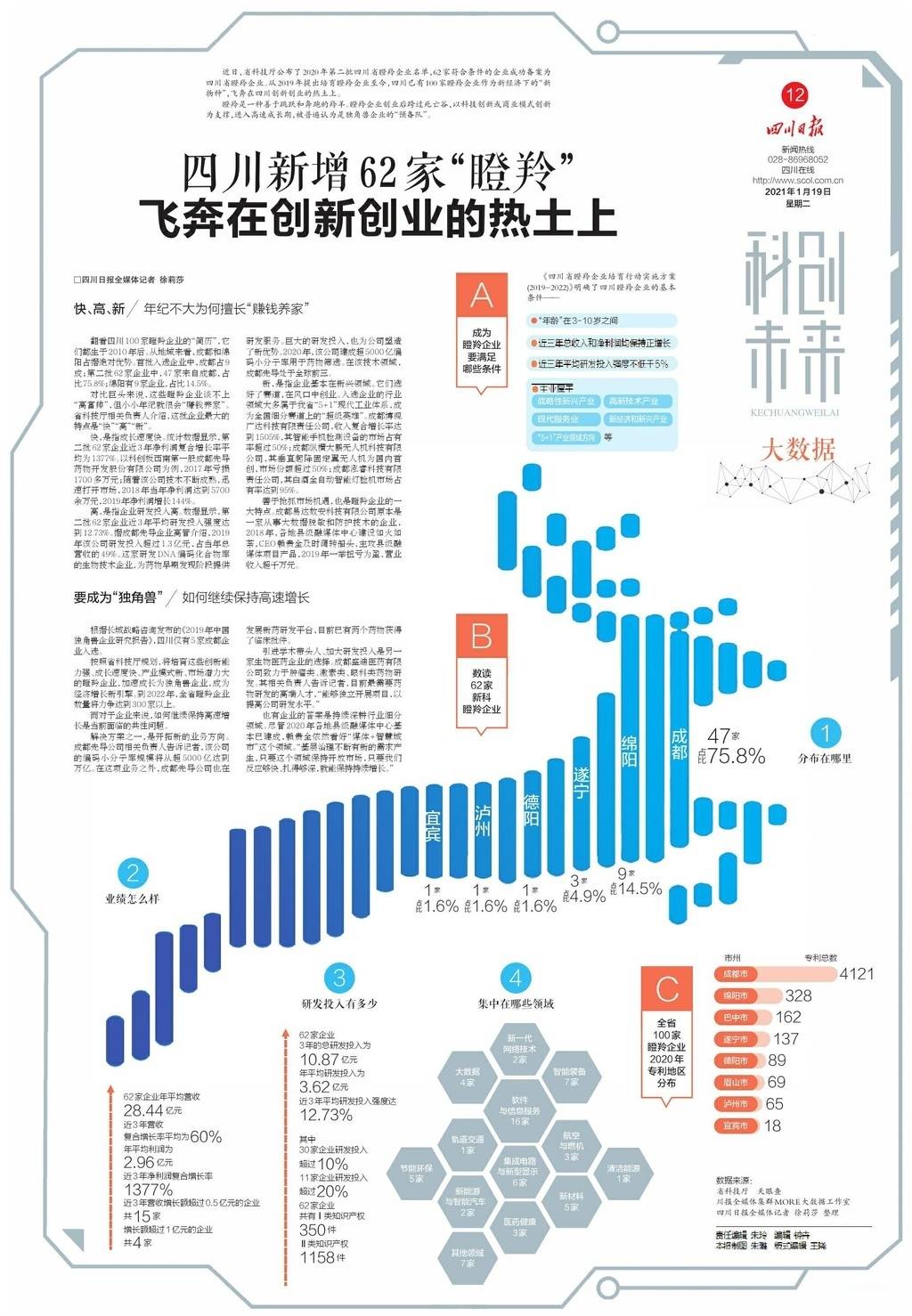 近日,省科技厅公布了2020年第二批四川省瞪羚企业名单,62家符合条件的企业成功备案为四川省瞪羚企业。从2019年提出培育瞪羚企业至今,四川已有100家瞪羚企业作为新经济下的“新物种”,飞奔在四川创新创业的热土上。