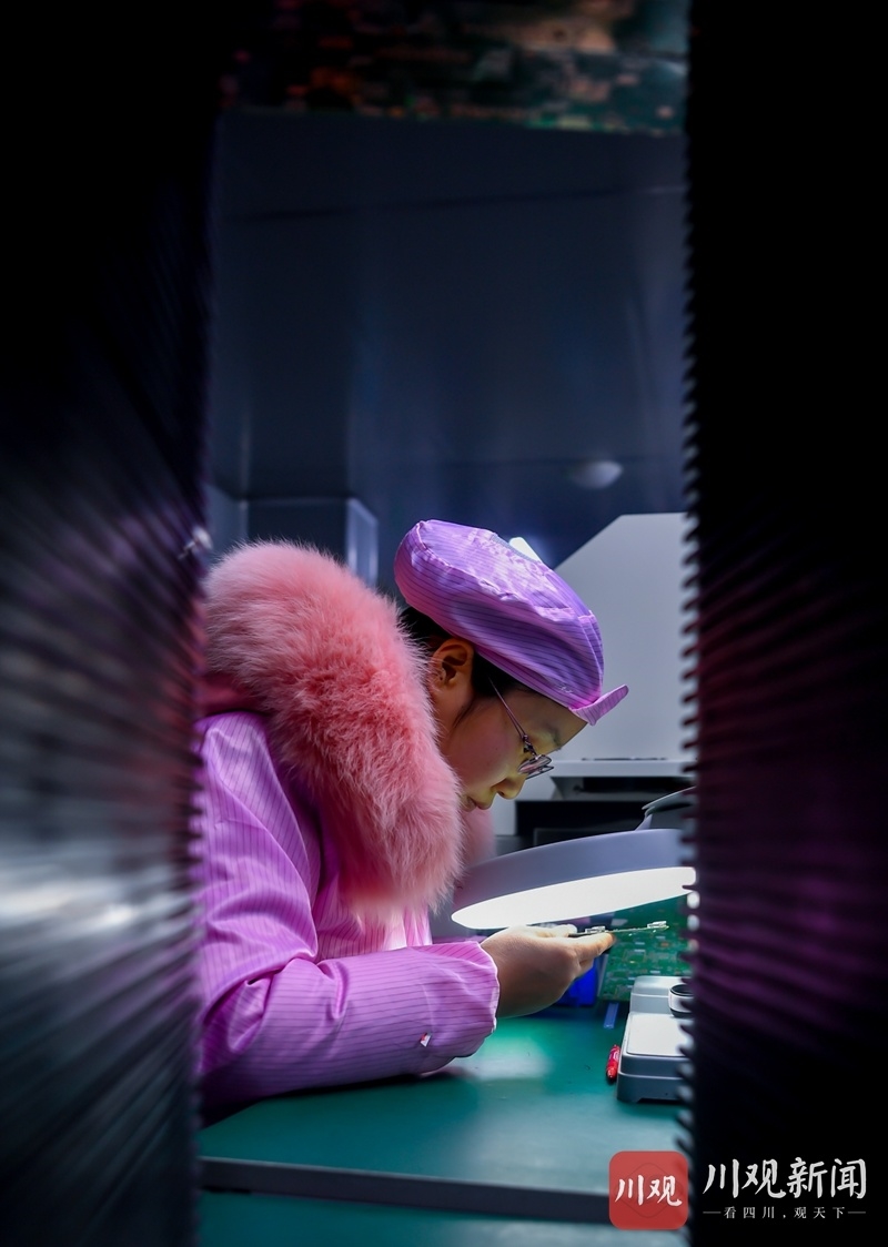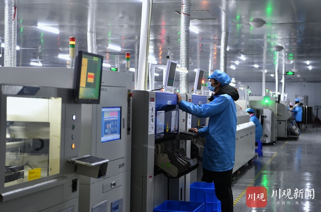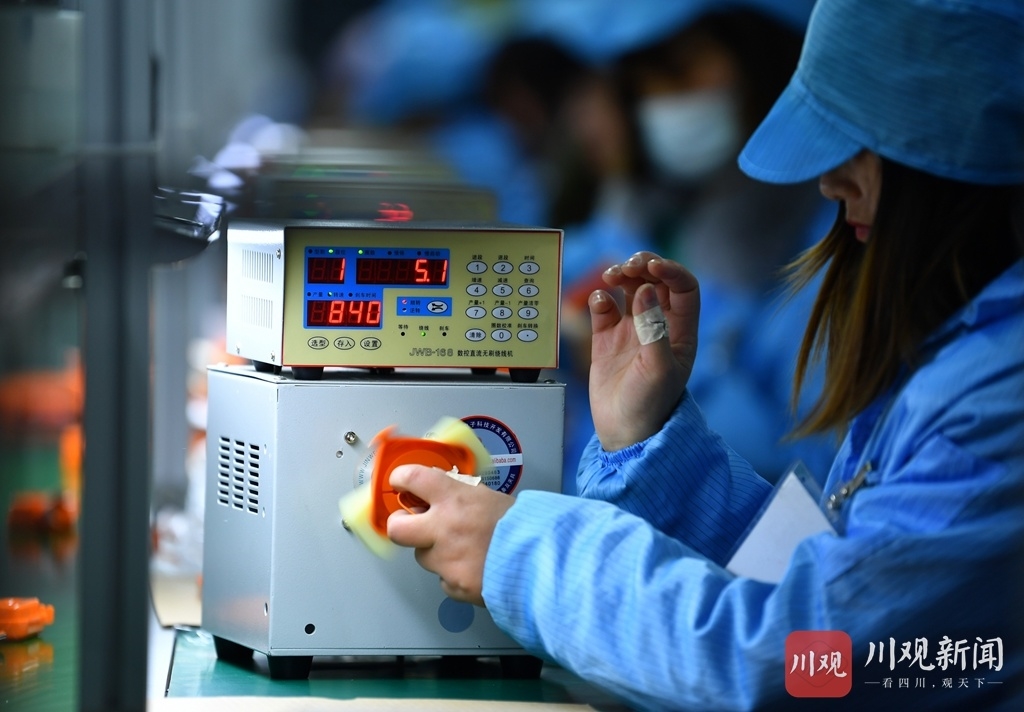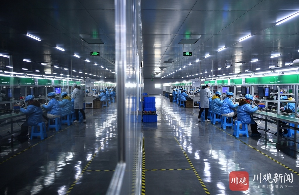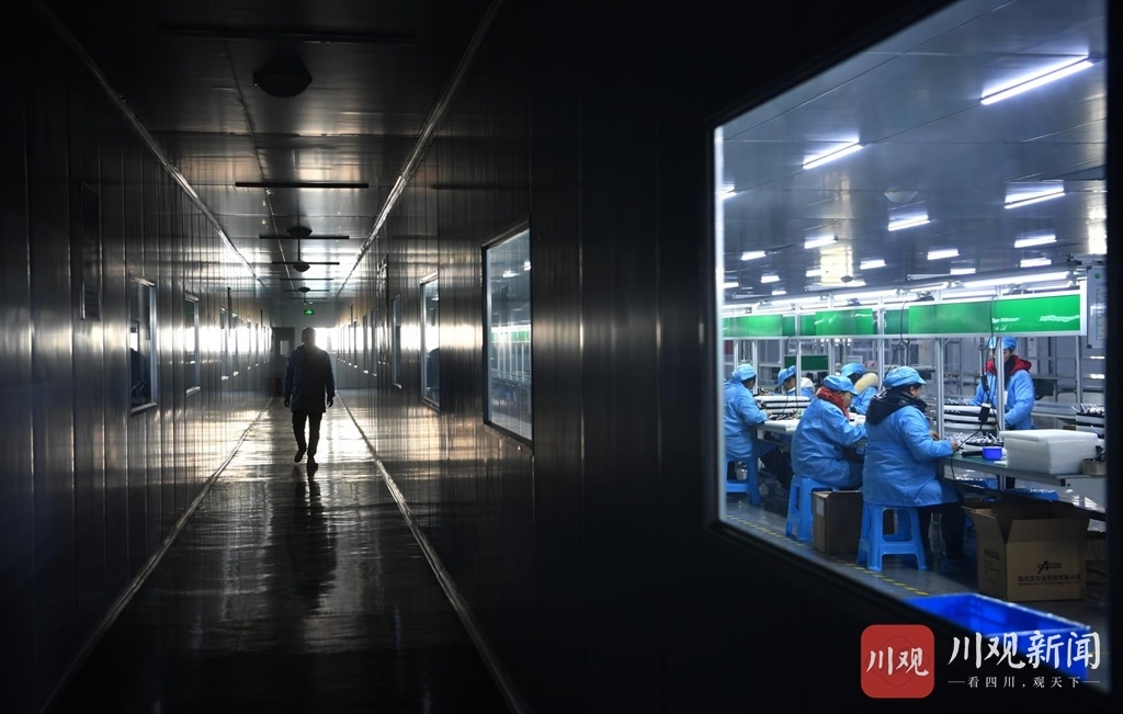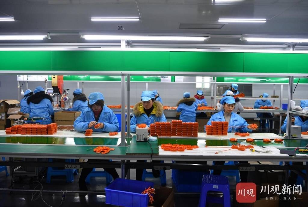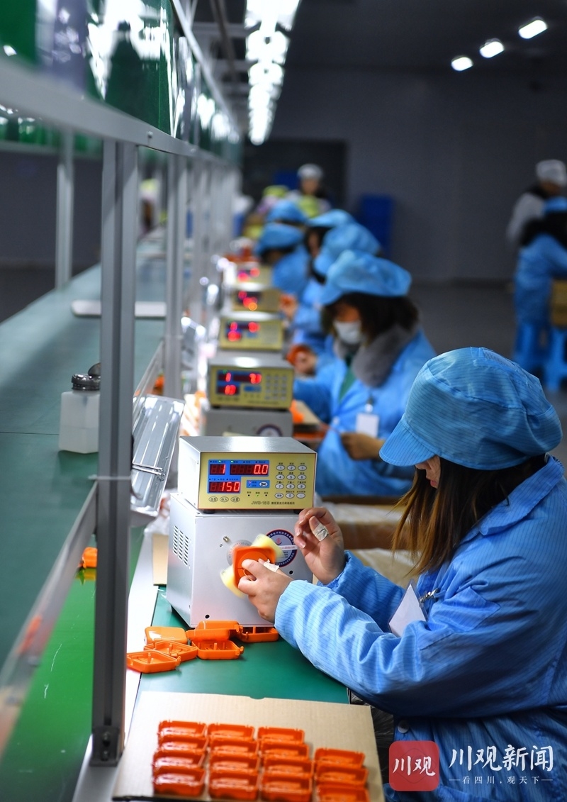 1月19日,在眉山市东坡区一电子企业封装车间内,工人们正加紧生产着出口南美的摄像头设备。
