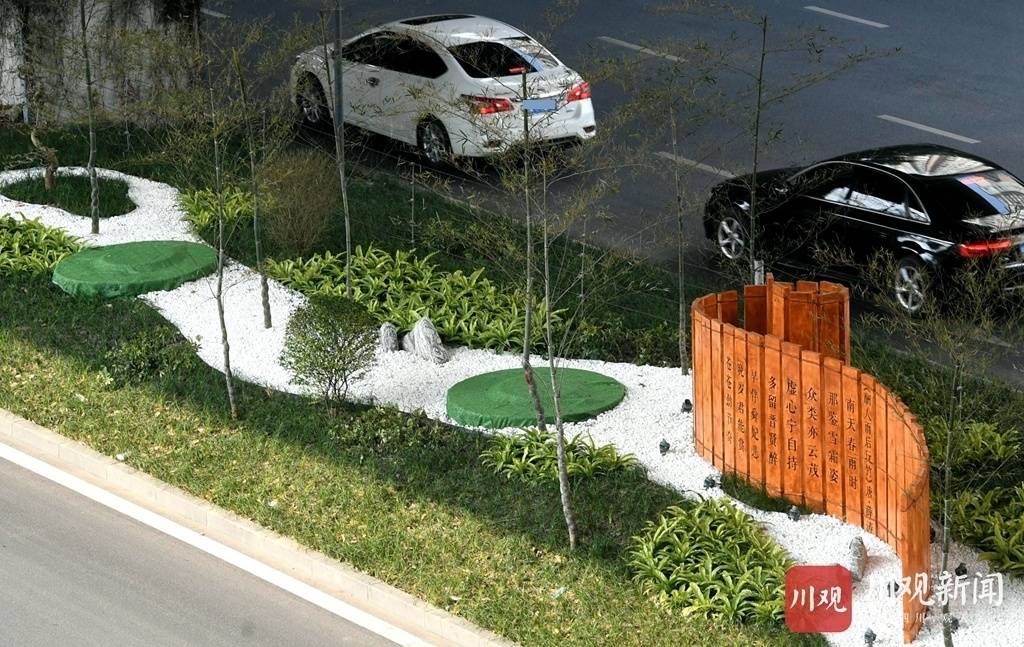 据悉,成都市为迎接大运会,以二环路BRT站点作为城市形象展示新空间,对各站点绿化带进行了氛围改造。按照一站一主题、一站一风格的设计方式,采用竹编非遗、汉风蜀韵、远山盛景、科技时尚等主题,充分展示成都文化底蕴与时尚活力。目前,绿化带景观提升已基本完成施工,栽植有小叶榕、龙血树等20余种植被,提升了约9600平方米的绿化面积。