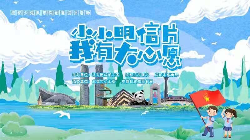 “小小明信片 我有大心愿”明信片创意设计活动。面向全市少先队员以“我心中的未来五年”为主题开展明信片创意设计征集活动,熊猫邮局的校外辅导员及吉祥物YOYO将带领少先队员们学习明信片发展历史和制作知识,并鼓励小队员们用自己手中的画笔畅想成都未来幸福美好生活。最终,活动将遴选出2035张最具创意、最具特色作品,为“小画家们”私人订制成精美明信片,并开展“我与未来五年有个约—蓉城百万少先队员勾画成都新蓝图”巡回展览。