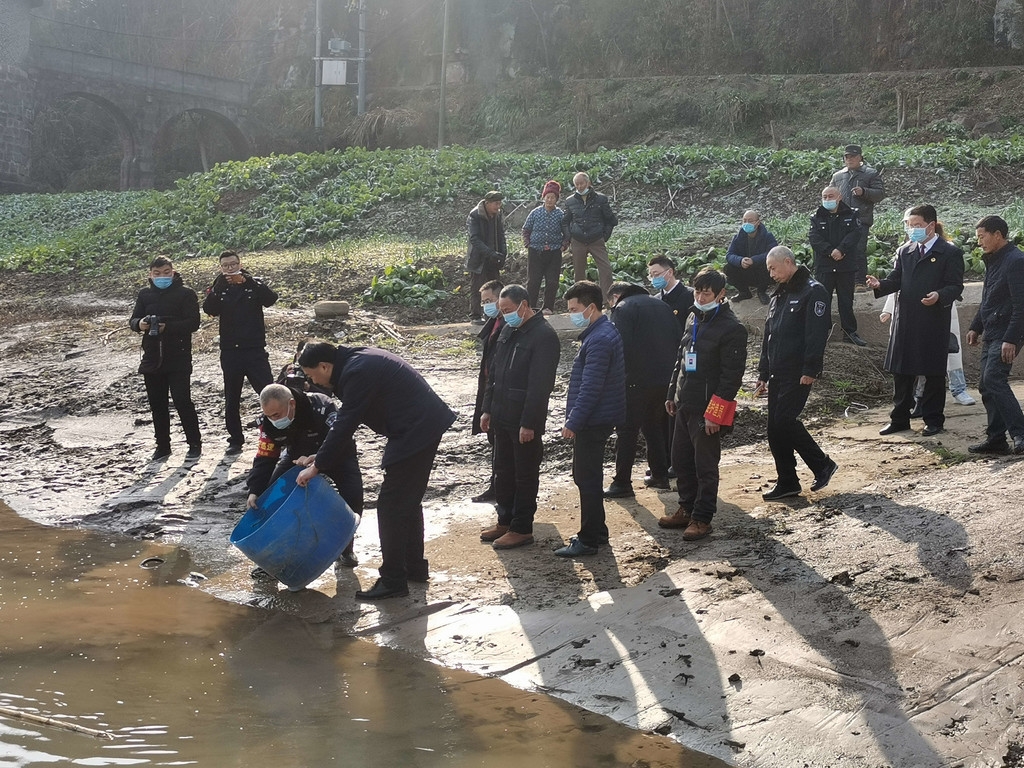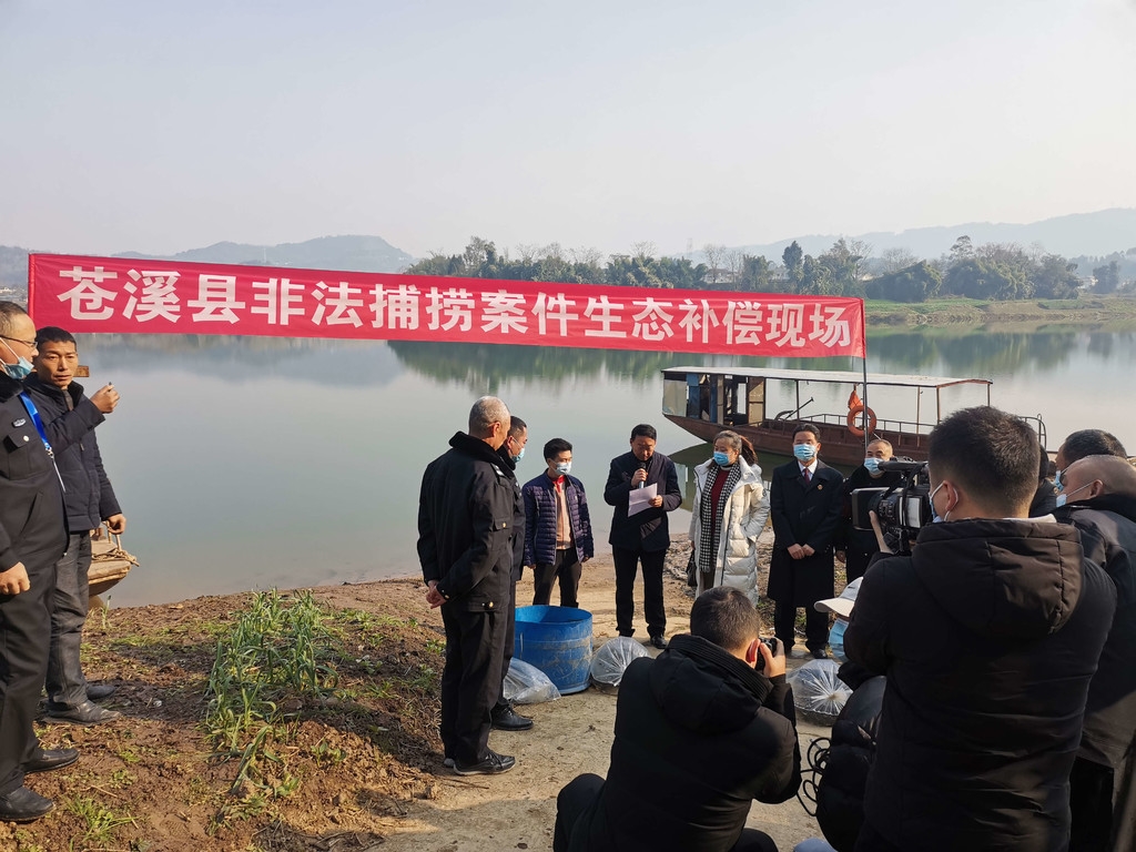 1月20日,记者从四川省水产局获悉,近日广元市苍溪县农业农村局、县检察院、县纪委监委、县公安局、县电视台、云峰镇政府在云峰镇金石村东河江边联合开展非法捕捞案件生态补偿增殖放流活动。