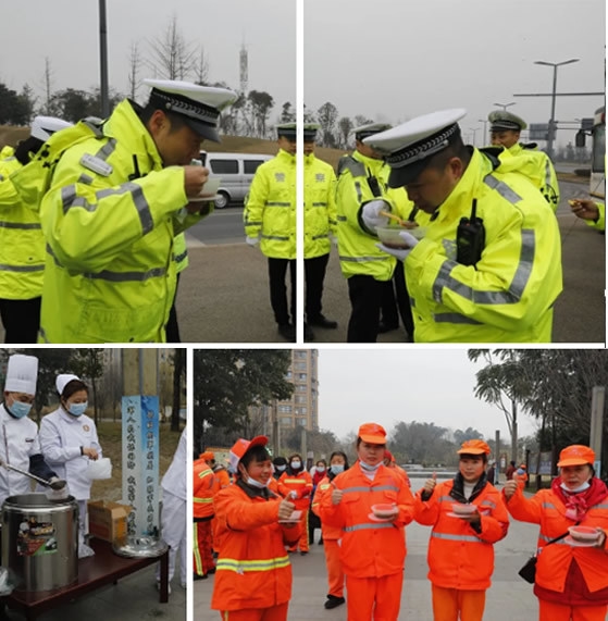 今天是一年中最后一个节气大寒,也是中国传统节日腊八节,新津区中医医院为一线环卫工人、交警、一线防疫人员送去了一碗碗热气腾腾的腊八粥。