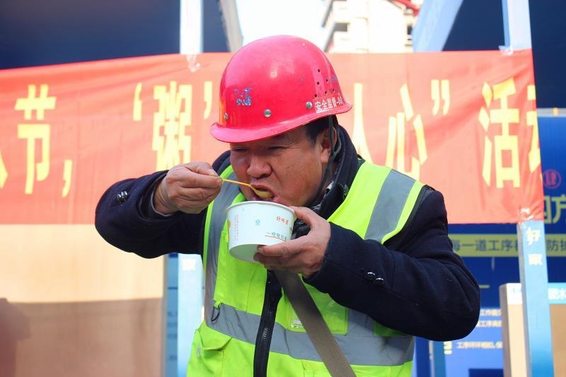 “吃了腊八粥啊,我们就等着过年咯!”刚从项目工地回来的工友们就在现场端起一碗免费的腊八粥,热乎乎地喝了起来。