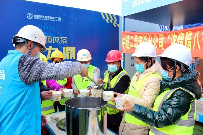 “小孩小孩你别馋,过了腊八就是年。”新年的序幕随着一首腊八节民谣被缓缓拉开。1月20日,中建二局四川分公司工会为了进一步加强疫情防控,鼓励务工人员“原地过年”,联合绵阳市经开区总工会走进绵阳万达项目开展“双节”保安全保稳定专项行动,启动工地腊八节“‘粥’到暖人心”关爱农民工群体系列活动,多措并举为农民工友做好春节错峰休假保障工作。