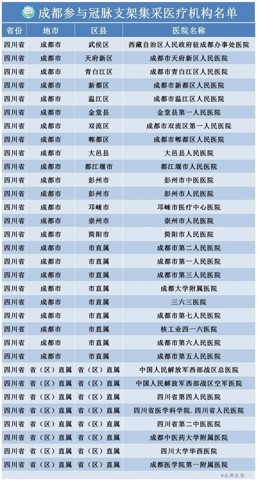 目前成都地区共有32家医疗机构参与本次高值医用耗材集采。