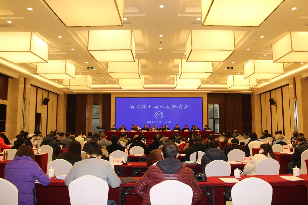 1月25日,四川省文联第七届全省委员会第六次会议在成都召开。会议深入贯彻习近平新时代中国特色社会主义思想和党的十九大、十九届二中、三中、四中、五中全会精神,传达中国文联十届六次全委会、全省宣传部长会议精神,全面总结四川省文联2020年工作,分析当前形势和任务,部署2021年工作,推进文联深化改革,进一步团结引导广大文艺工作者,为繁荣发展社会主义文艺事业、推进文化强省建设作出积极贡献。