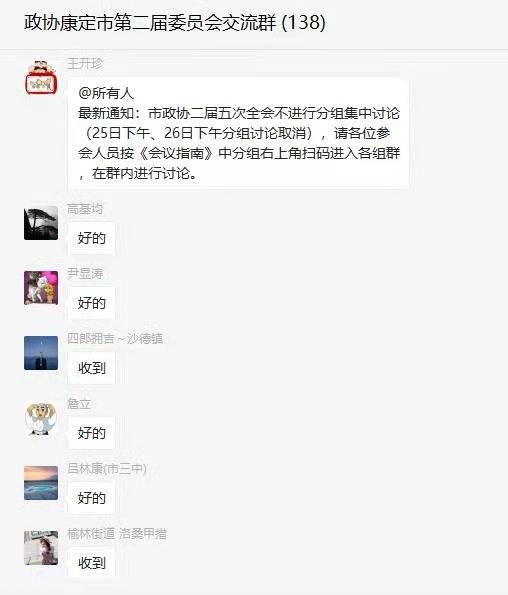 市政协副主席吴明琼表示,“考虑到新冠肺炎疫情防控要求,政协第二届康定市委员会第五次会议采取建立联组微信群,组织各界别委员开展网络议政,共商兴市大计,共谋富民良策,就讨论情况来看,效果很好。”