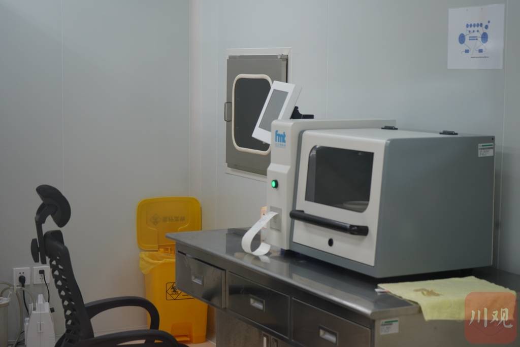 “风淋已启动……”记者看到,西南医科大学附属医院消化内科科研助理许欣欣打开粪菌移植治疗中心一扇独立卫生间的门,人刚站进去,就发出提示音。“这是无菌操作的第一步,清除人身上的尘埃粒子,可有效降低外部进入洁净区的污染。”许欣欣说。