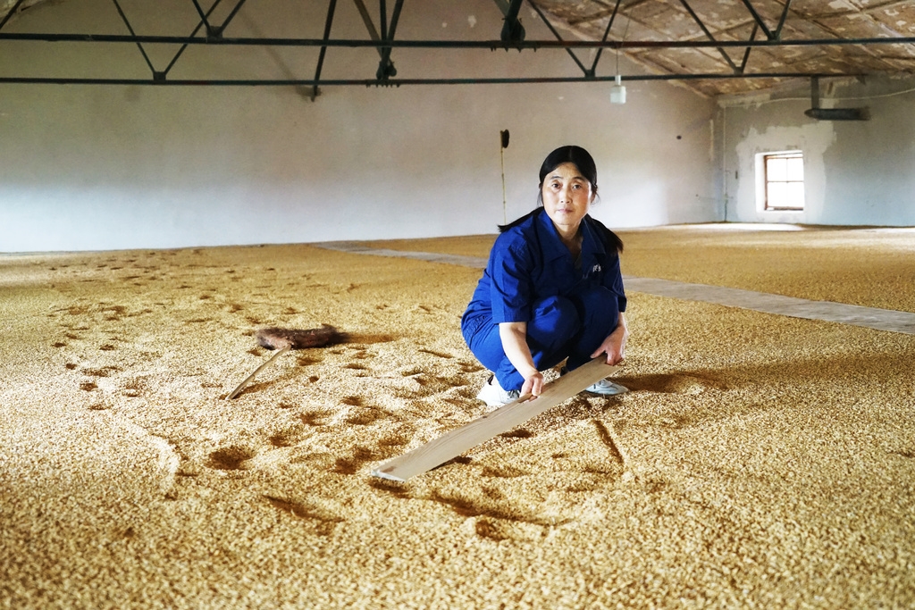身穿迷彩服、面戴防尘口罩,扛着铁耙子,穿梭在粮仓之间……蒲丽蓉的青春显得格外简单质朴。