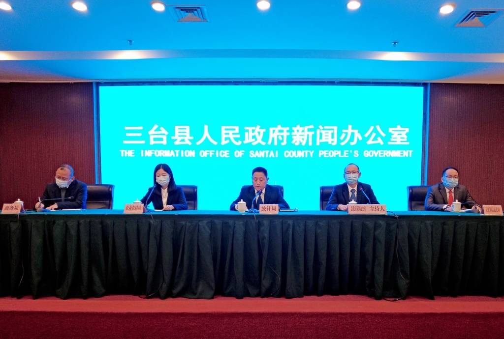 1月26日,绵阳市三台县举行2020年度经济形势新闻发布会。四川在线记者从发布会上了解到,三台县实现地区生产总值首次突破400亿元大关,为407.45亿元,比上年增长4.2%。在第一产业方面,三台县三项数据位列全省第一。2020年三台县生猪存栏达65万头,出栏生猪103.5万头,较上年增长16 %,均保持全省第一;油料收获面积79万亩,较上年增长0.1%,位居全省第一。