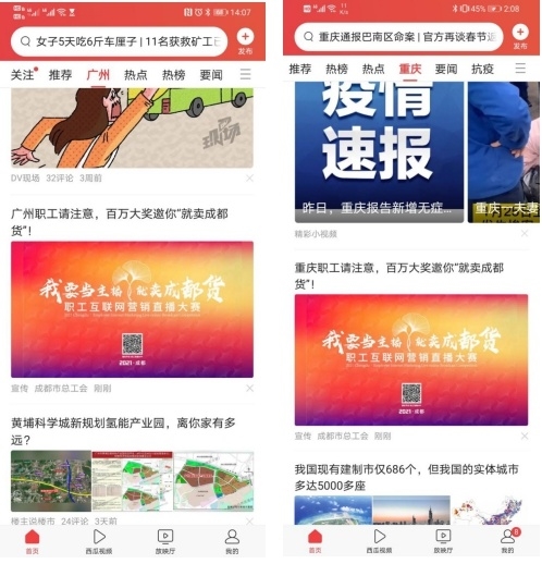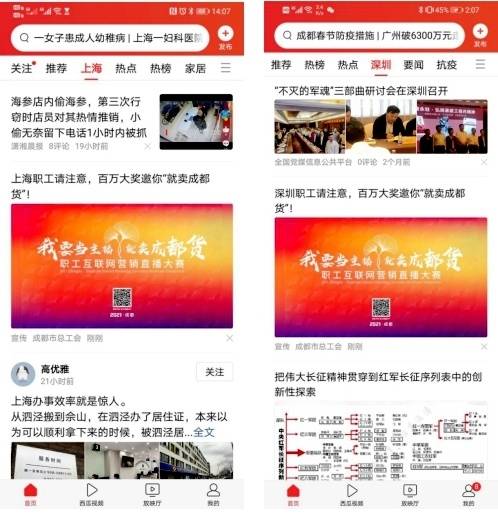 1月27日19时30分,由成都市总工会等部门联合举办的“我要当主播就卖成都货”2021成都·职工互联网营销直播大赛正式启动。据悉,该大赛组委会通过微信朋友圈等网络平台,连接北京、上海、广州、深圳、杭州、重庆、西安等近100座城市职工朋友,开启“百城联动”报名接力,掀起全球直播“就卖成都货”热潮。
