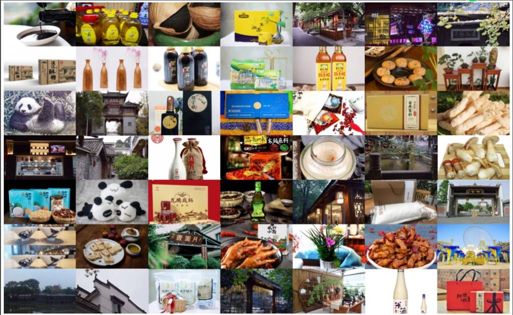 食:温江滴窝油;温江酥糖;龙腾火锅底料;九碗九品鉴酒;老鼎卤味;品滋味牛油火锅底料。