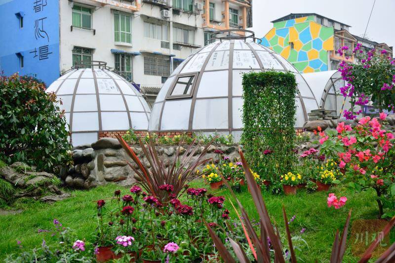 柏条河路和莲花堰路之间,几条高压线从“不舍春水”街区空中穿过,路面上的社区公园里,游客和当地居民散坐在阳光房或绿地旁。“娃娃天天喊道过来耍,荡秋千、滑滑梯、人造沙丘上‘钻洞洞’,我也喜欢过来和朋友喝茶。”居民张国斌脸上溢出笑容,“环境好了,多了一个游玩和享受时光的好地方。”