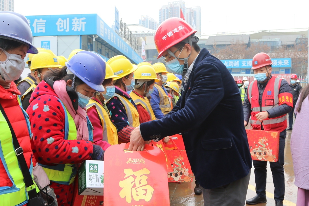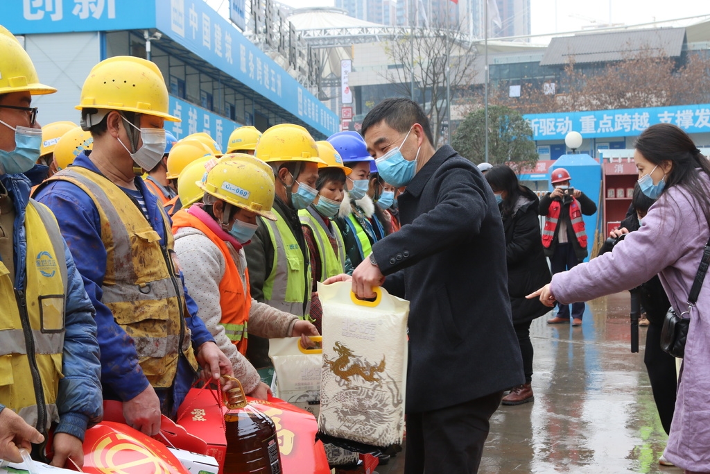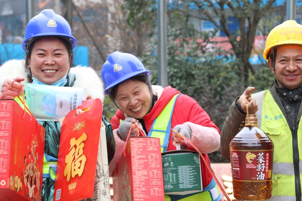 据中建五局四川公司工会负责人介绍,公司工会积极响应属地部门号召,在各在建项目发出倡议书,鼓励外省工友“就地过年”,同时制定了一系列针对工友的保障措施,包括口罩、酒精、洗手液等在内的安心“防疫礼包”以及香肠、腊肉等年味十足的暖心“过年礼包”。