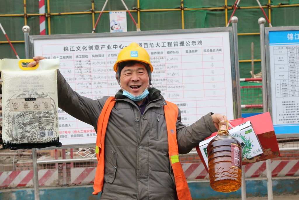 “老婆,今天我们发了好多年货,有米、油,还有牛奶!”1月27日,成都市锦江文化创意产业中心一期项目400名城市建设者提前收到了“年味大礼包”。